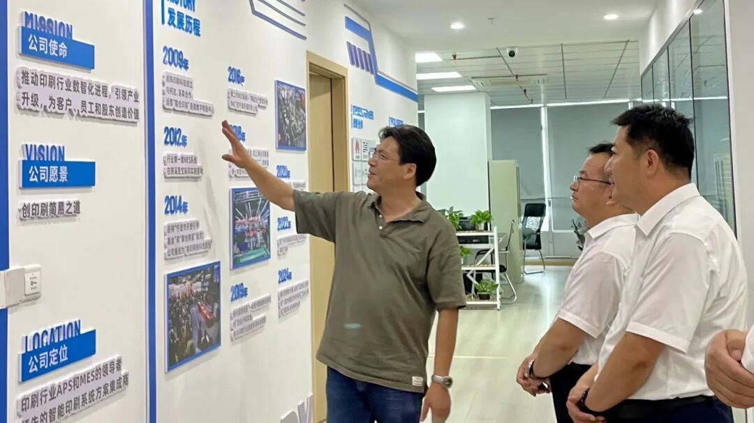 2024年6月21日,山東省梁山縣人民政府副縣長陳秀生、文化產業服務中心主任秦濤、科技局局長李光振一行蒞臨易印公司考察。