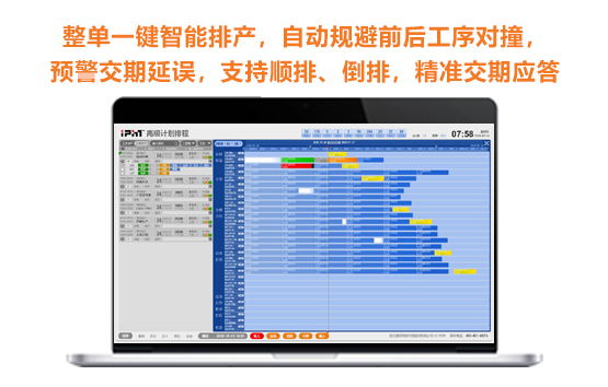 整單一鍵智能排產,自動規避前后工序對撞,預警交期延誤,支持順排、倒排,精準交期應答