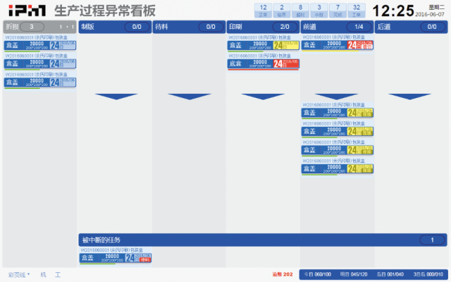 生產異常監控:計劃超時、損耗超量、任務中斷等信息自動顯示,動態預警