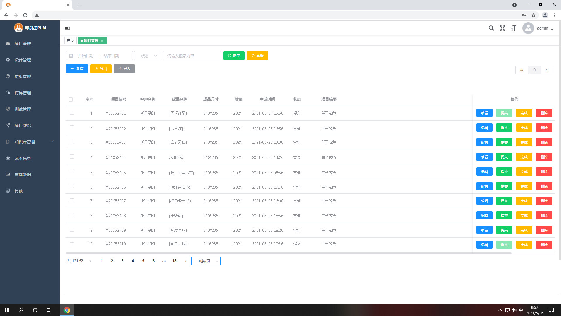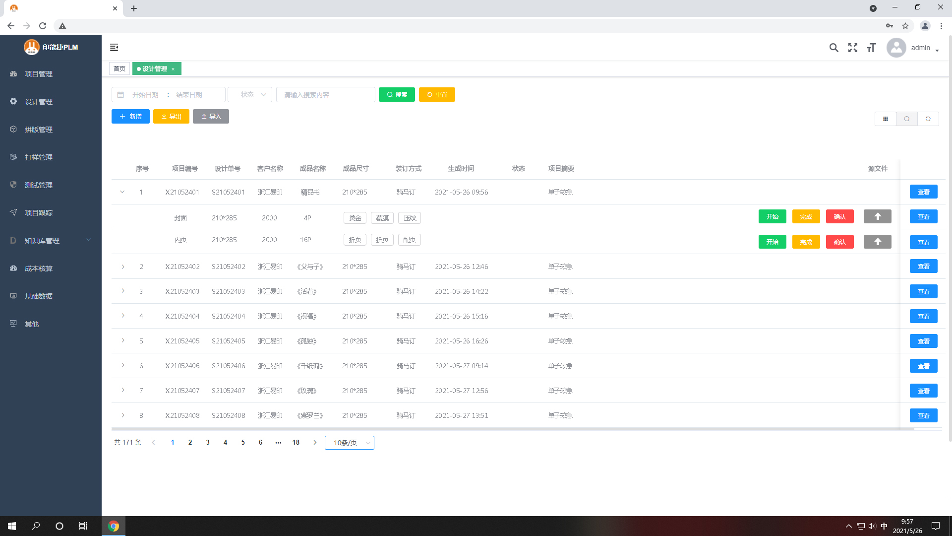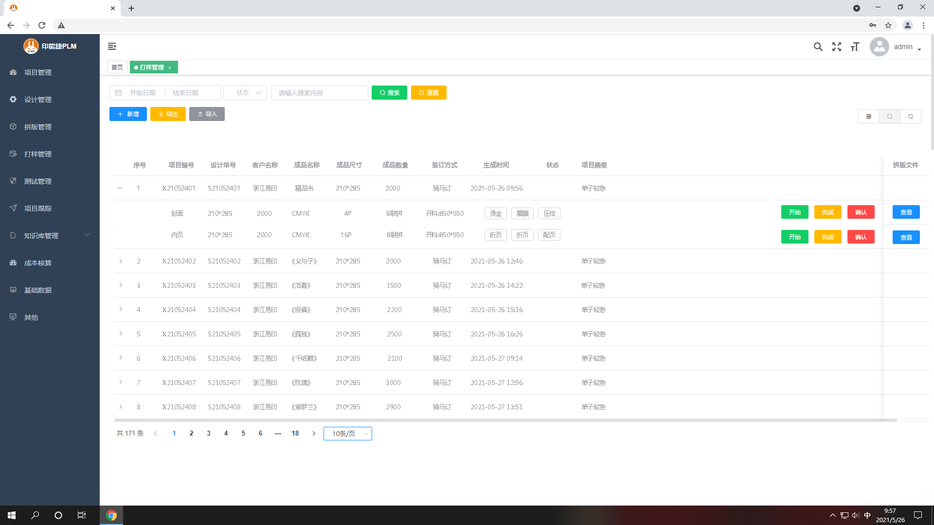 4.客戶在線確認之后任務流轉到打樣管理,生成打樣任務