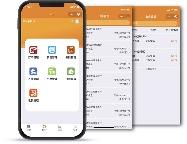 通過與PC系統的互聯互通,實時數據反饋,實現移動端便捷的訂單管理、銷售管理、采購管理、出入庫管理、收付款管理等,手機一鍵查看業務進程,提升業務反應效率。