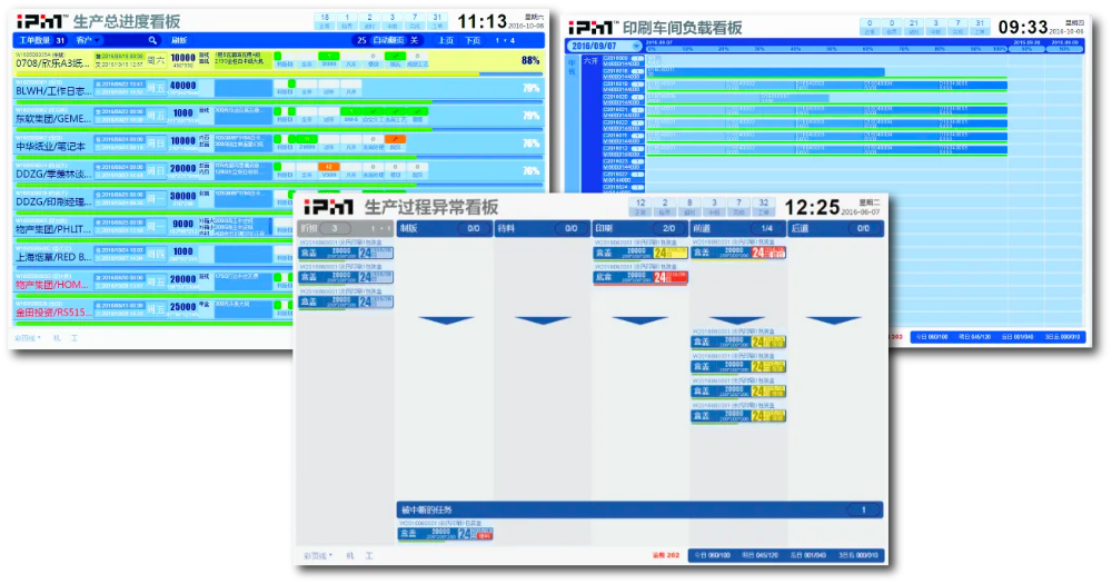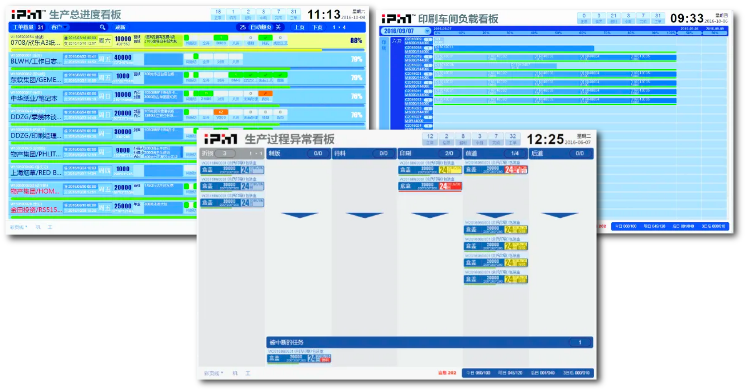 生產異??窗?;生產全局進程;車間設備負載動態展示