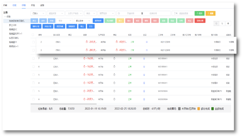4.支持各個機臺根據交貨時間,印色,幅面等條件進行自動排序,同時也可進行手動拖拉;